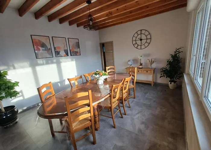 Les clients sont invités à préparer leurs propres repas dans une cuisine complète du bâtiment. Vous pourrez dîner à L'ancienne maison commune, situé à 150 mètres de cette propriété d'Hondeghem. L'arrêt de bus le plus proche est l'arrêt de bus Hondeghem Place, juste à quelques pas de villa.